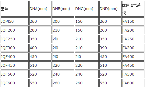 表4.JQF150-JQF600管路參數表(參見圖四)